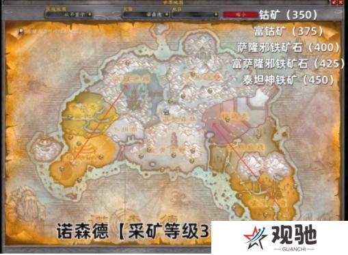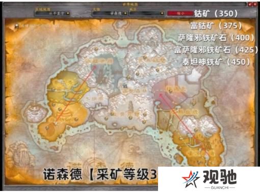 魔兽世界采矿350级怎样快速升级,很多玩家不了解,快来和本站一起看看,350级速升挖矿位置图解吧。更多推荐:《魔兽世界》1-450级采矿矿石分布大全魔兽世界采矿350级矿石分布图:1、350级开始挖精