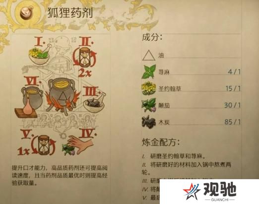 天国拯救2游戏中有许多药剂需要炼制,很多玩家不知道狐狸药剂怎么炼制,快来和本站一起看看,狐狸药剂配方炼制方法吧。更多推荐:《天国拯救2》炼金配方大全天国拯救2狐狸药剂配方:一、成分:油、1个荨麻、1个