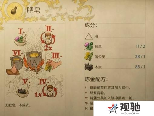 天国拯救2游戏中有许多药剂需要炼制,很多玩家不知道肥皂怎么炼制,快来和本站一起看看,肥皂配方炼制方法吧。更多推荐:《天国拯救2》炼金配方大全天国拯救2肥皂配方:一、成分:油、2个蓟草、1个蒲公英、1个