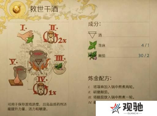 天国拯救2游戏中有许多药剂需要炼制,很多玩家不知道救世干酒怎么炼制,快来和本站一起看看,救世干酒配方炼制方法吧。更多推荐:《天国拯救2》炼金配方大全天国拯救2救世干酒配方:一、成分:酒、1个荨麻、2个
