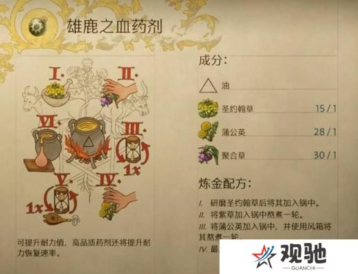 天国拯救2游戏中有许多药剂需要炼制,很多玩家不知道雄鹿之血药剂怎么炼制,快来和本站一起看看,雄鹿之血药剂配方炼制方法吧。更多推荐:《天国拯救2》炼金配方大全天国拯救2雄鹿之血药剂配方:一、成分:油、1
